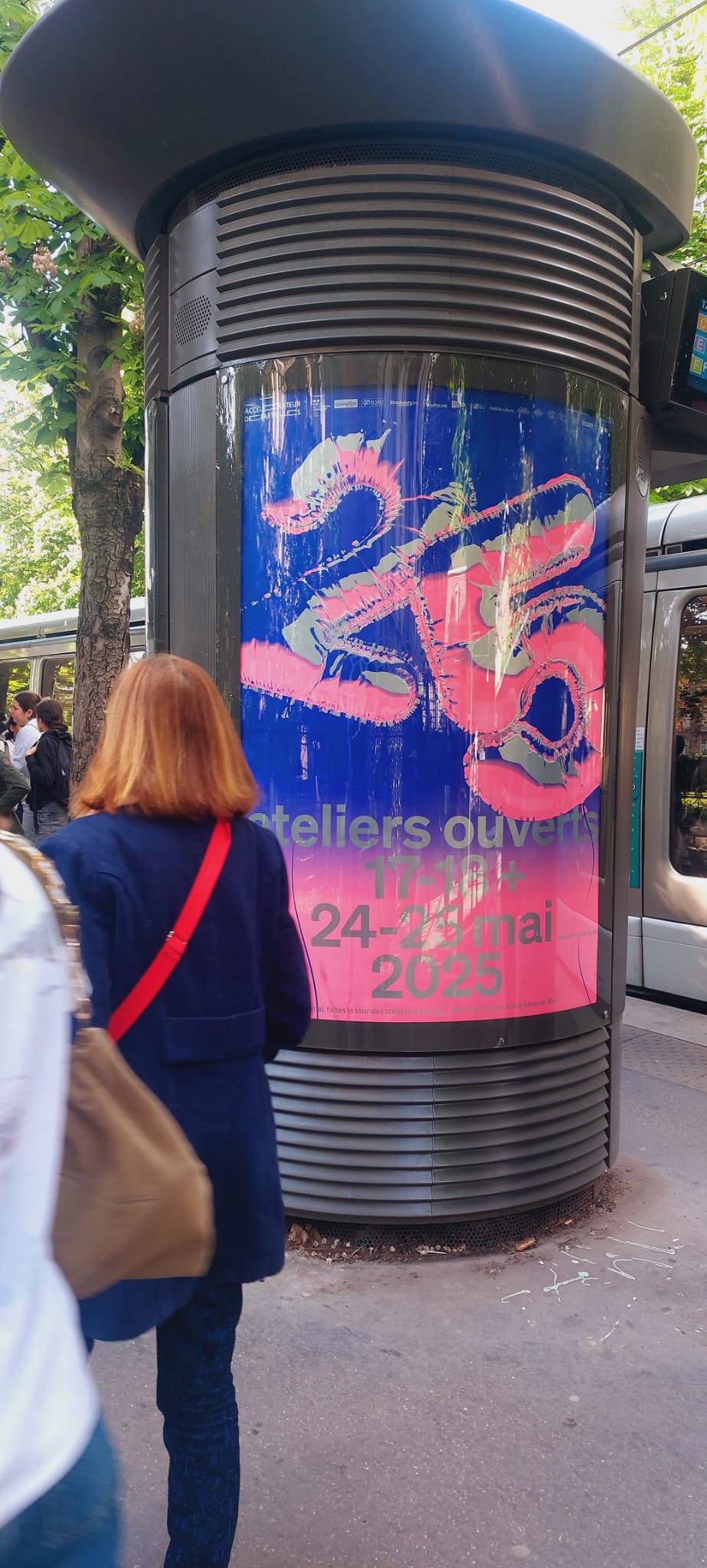 L’affiche des Ateliers Ouverts 2025 pose les bases d’une identité visuelle claire, singulière et flexible, destinée à s’étendre sur plusieurs éditions. En détournant un objet populaire, mais aussi iconique de l’art contemporain (le ballon aluminium) elle souligne avec humour et légèreté la dimension festive et accueillante de l’événement. Ce symbole fort et identifiable pourra être par ailleurs installé physiquement devant les ateliers, marquant ainsi de manière ludique les lieux participants.