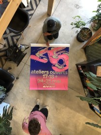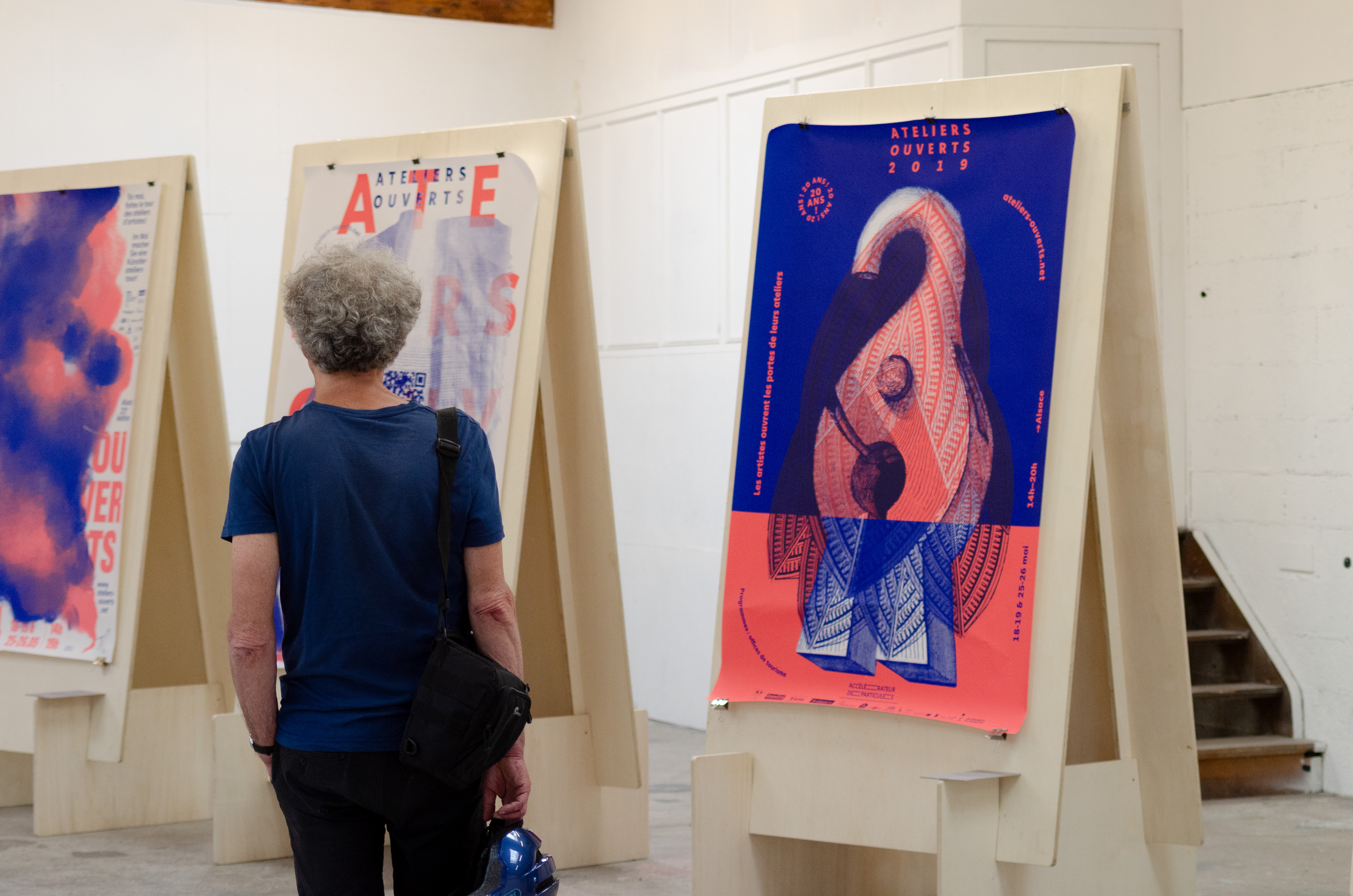 Nous profitons de cette refonte pour glisser une troisième couleur dans la gamme colorimétrique des Ateliers Ouverts. En sérigraphie, une encre métalique argentée vient compléter la gamme, donnat aux grandes affiches un statut encore plus unique, qui les distinguent particulièrement lorsqu'elles sont affichée dans la rue.