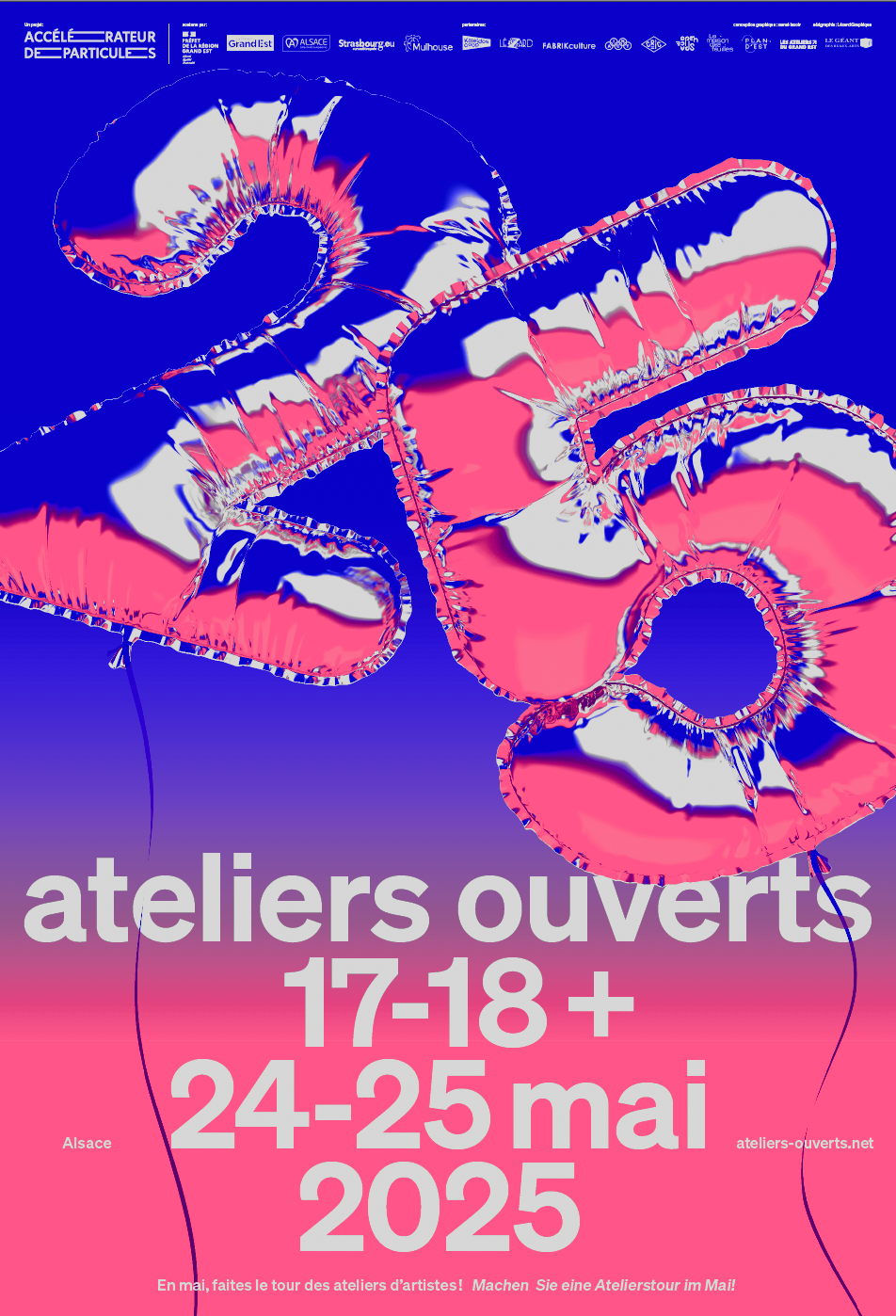 Événement transfrontalier organisé depuis 25 ans, les Ateliers Ouverts rassemblent chaque mois de mai, en Alsace et en Suisse, des centaines d’artistes plasticiens autour de deux week-ends de portes ouvertes, mêlant rencontres professionnelles, moments festifs et accueil du grand public. Après 10 années de collaboration, l’édition 2025 est l’occasion de renouveler notre direction artistique. Nous concevons un système visuel impactant et structurant, destiné à renforcer la lisibilité, la reconnaissance et la présence des Ateliers Ouverts dans l’espace urbain comme sur les supports numériques.