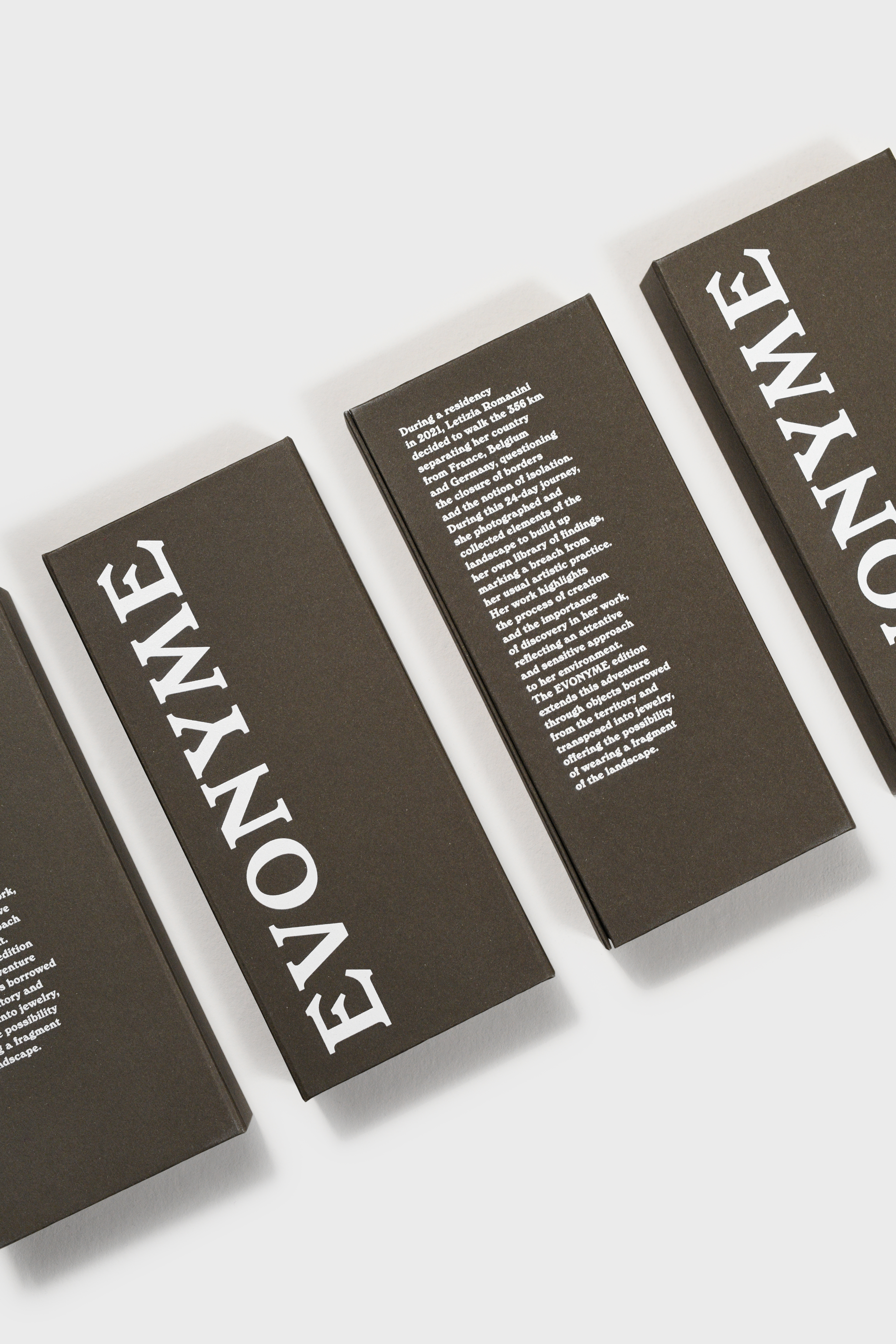 Son travail met en évidence le processus de création et l'importance de la découverte, reflétant une approche attentive et sensible de son environnement. L'édition EVONYME prolonge cette aventure à travers des objets empruntés au territoire et transposés en bijoux, offrant la possibilité de porter un fragment du paysage.